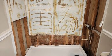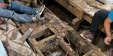 Leaking water caused damage all the way down to the floor joist.